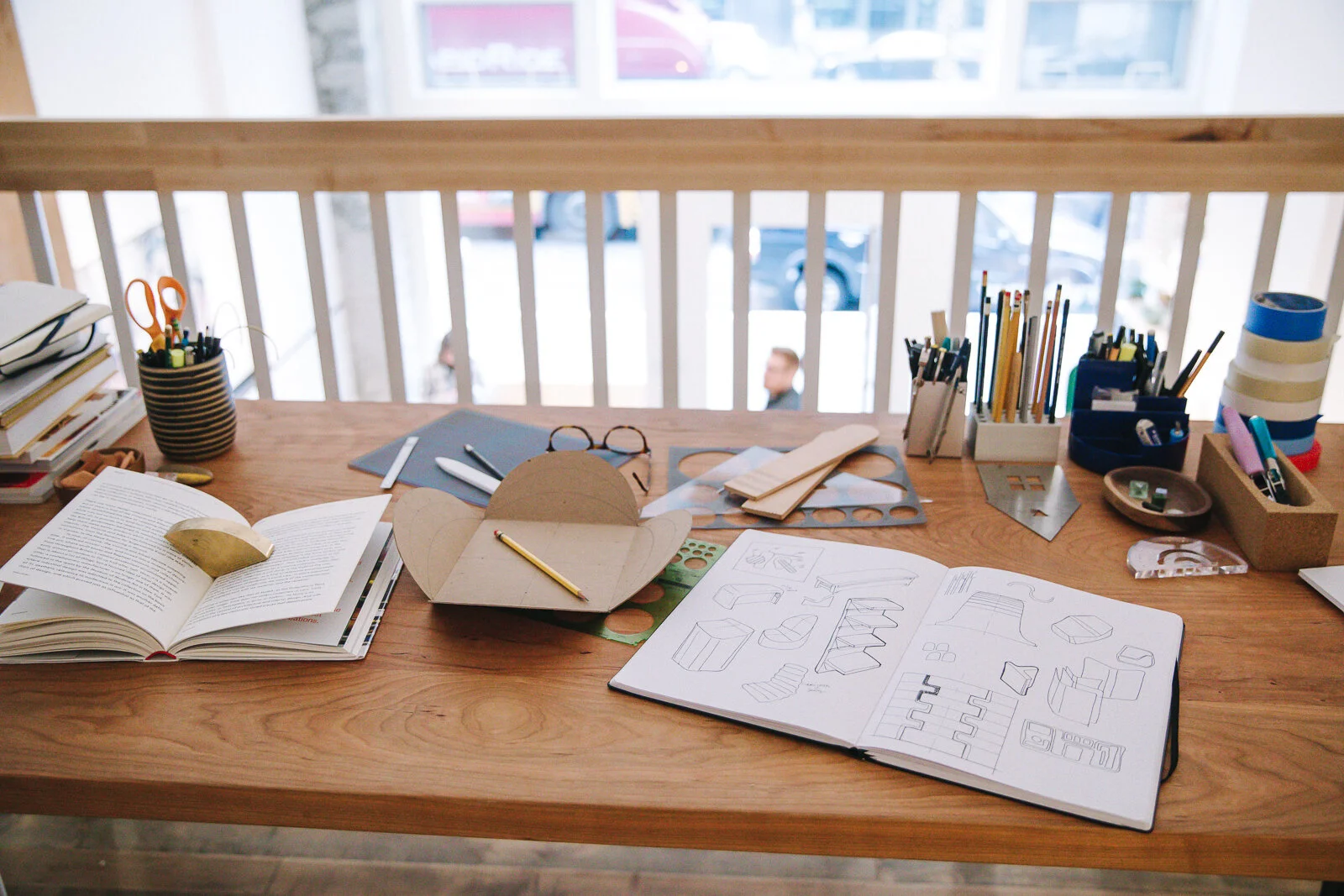 Anywhere there’s a stack of books, cocktails, and our sketchbooks.