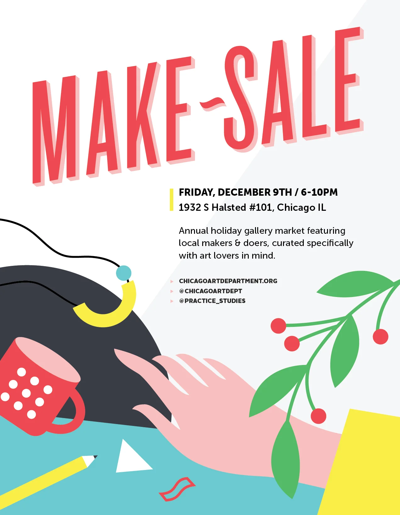 Make/Sale is a maker market showcasing talented local creatives, small business owners and artists. It’s a one night celebration of DIY culture, a thoughtfully curated commerce gallery hosted at Chicago Art Department.